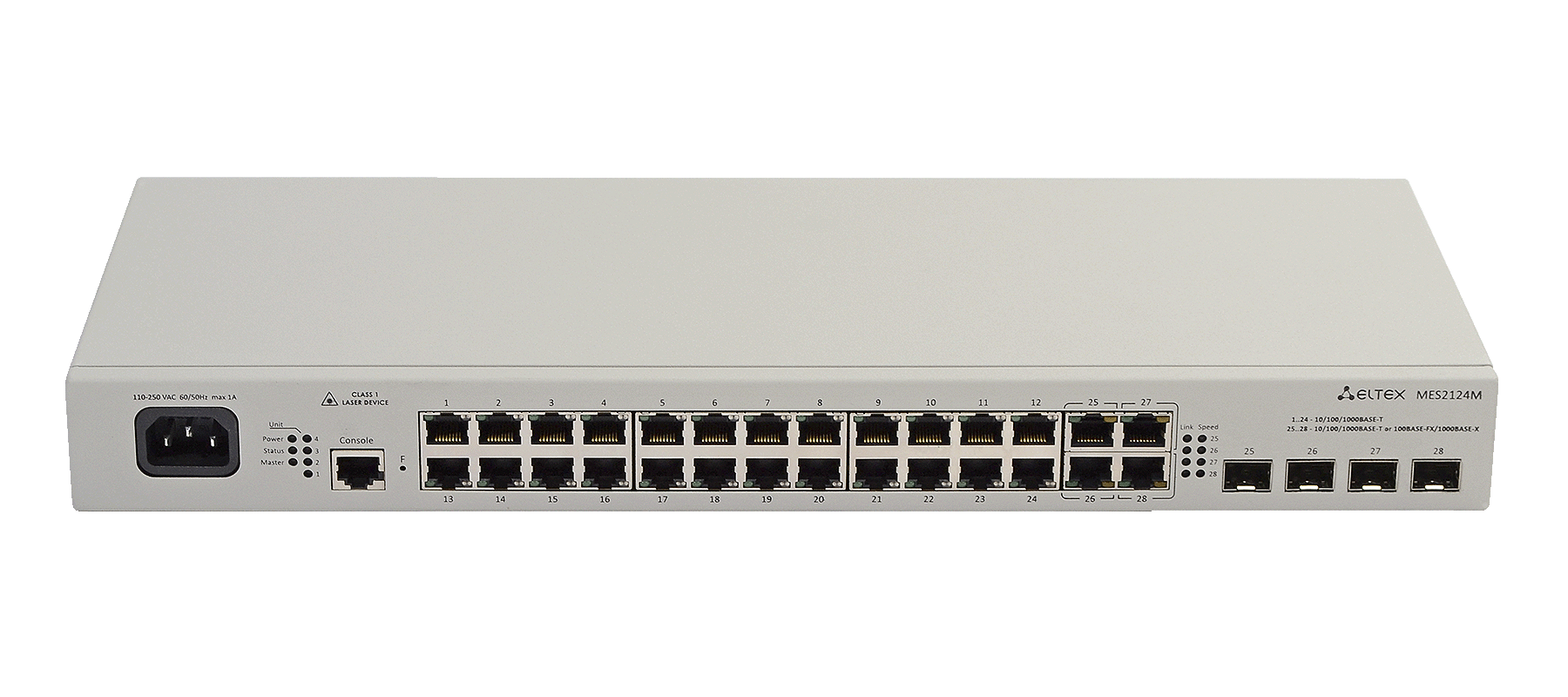 Коммутатор MES2124M осуществляет подключение конечных пользователей к сети крупных предприятий, предприятий малого и среднего бизнеса и к сетям операторов связи с помощью интерфейсов Fast и Gigabit Ethernet. Функциональные возможности коммутатора обеспечивают физическое стекирование, поддержку виртуальных локальных сетей, многоадресных групп рассылки и расширенные функции безопасности.